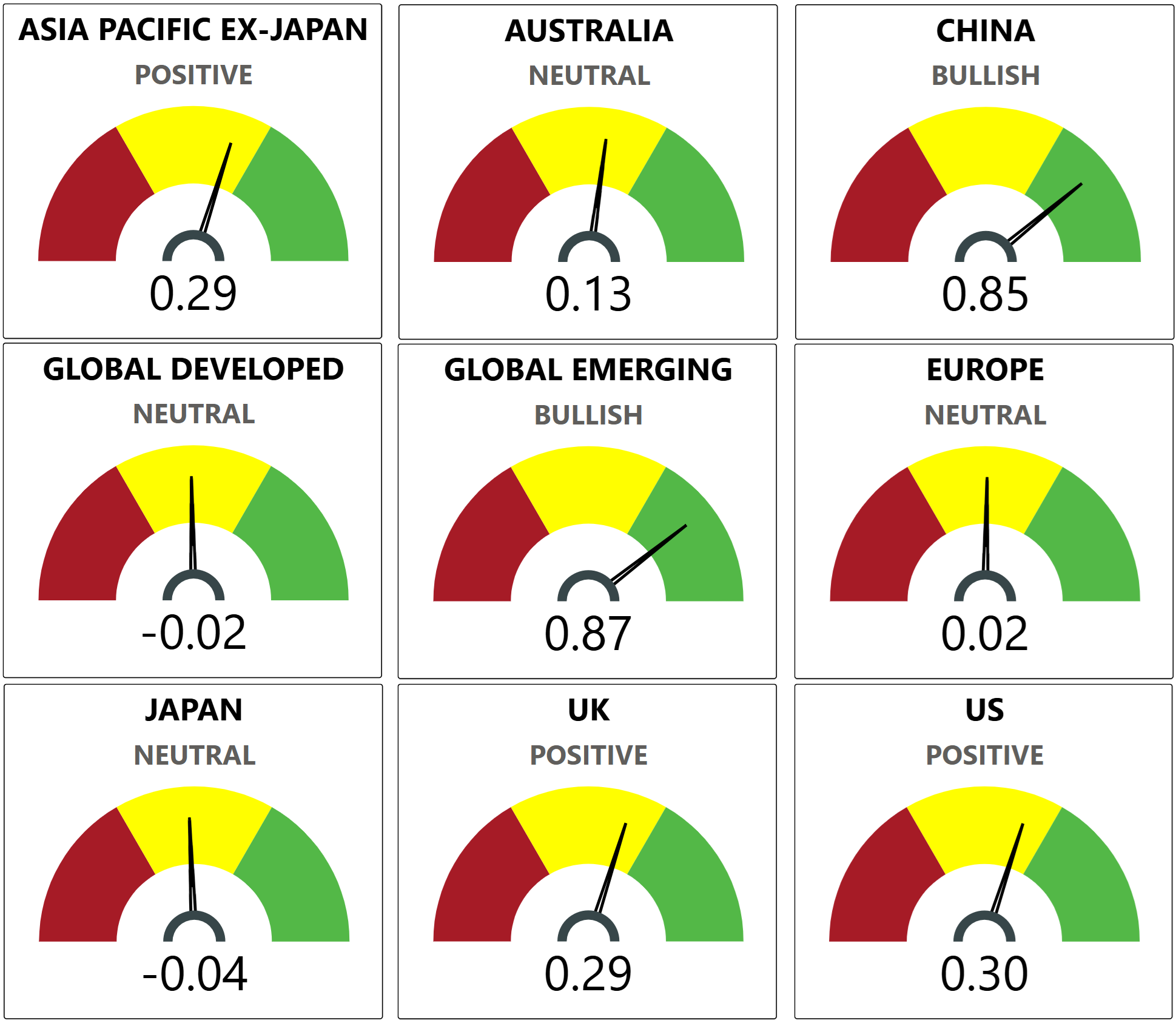 The ROOF Scores use a bottom-up methodology allowing us to quantify the implied sentiment of the average investor in the market as well as the active sentiment of any portfolio against its benchmark.